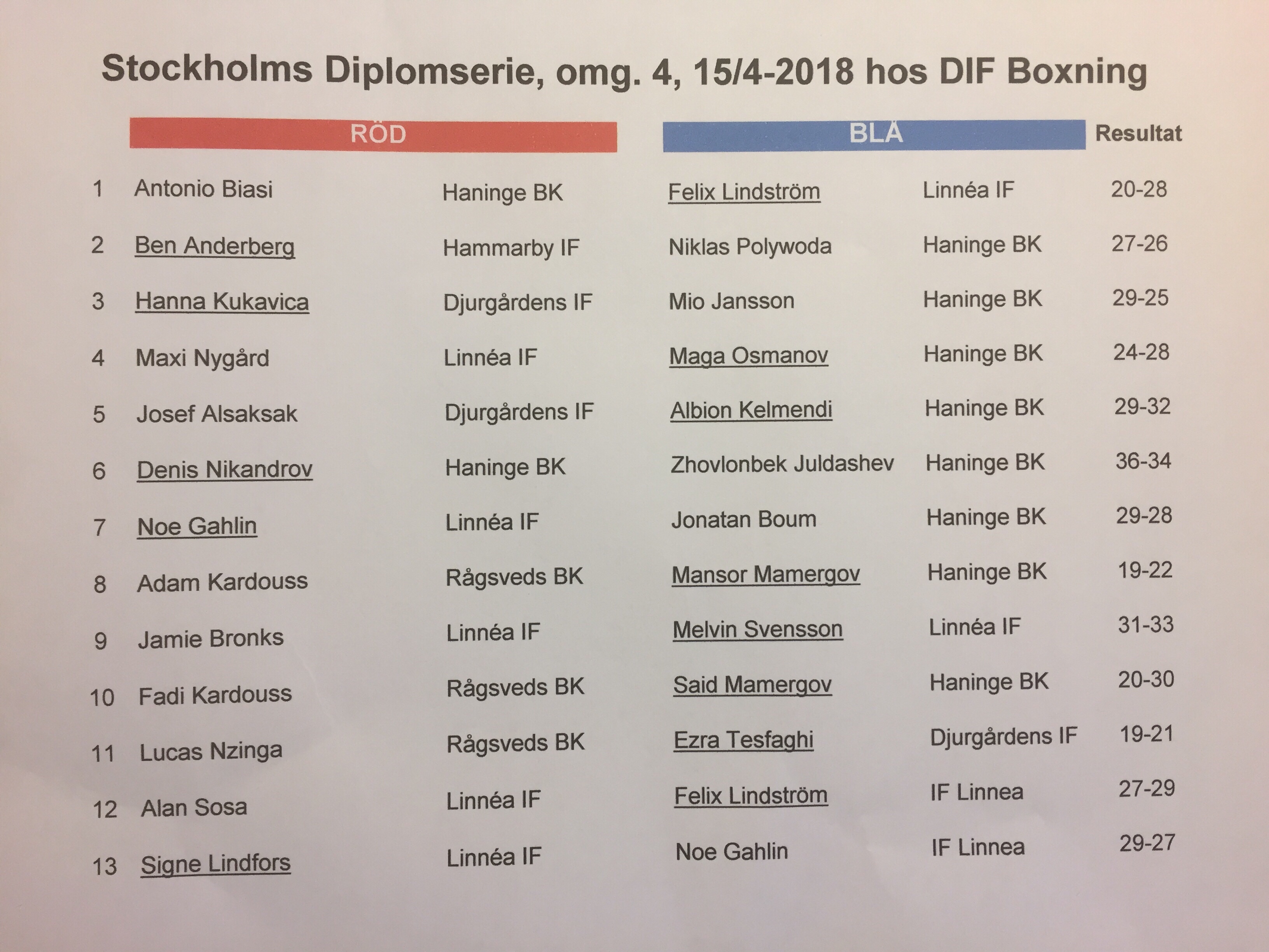 I går var det full fart på Tomtebogatan 13, dvs i Djurgården Boxnings klubblokal. Det var diplomboxningstävling ingående i Stockholmsserien. Ett 25-tal boxare i åldrarna 10-15 år visade upp sina boxningskunskaper, där domarna satte poäng för rena slag, kontringar och finter, garderingar och undanglidningar, balans och fotarbete. De som kom upp i 27 poäng kommer att få ett diplom.